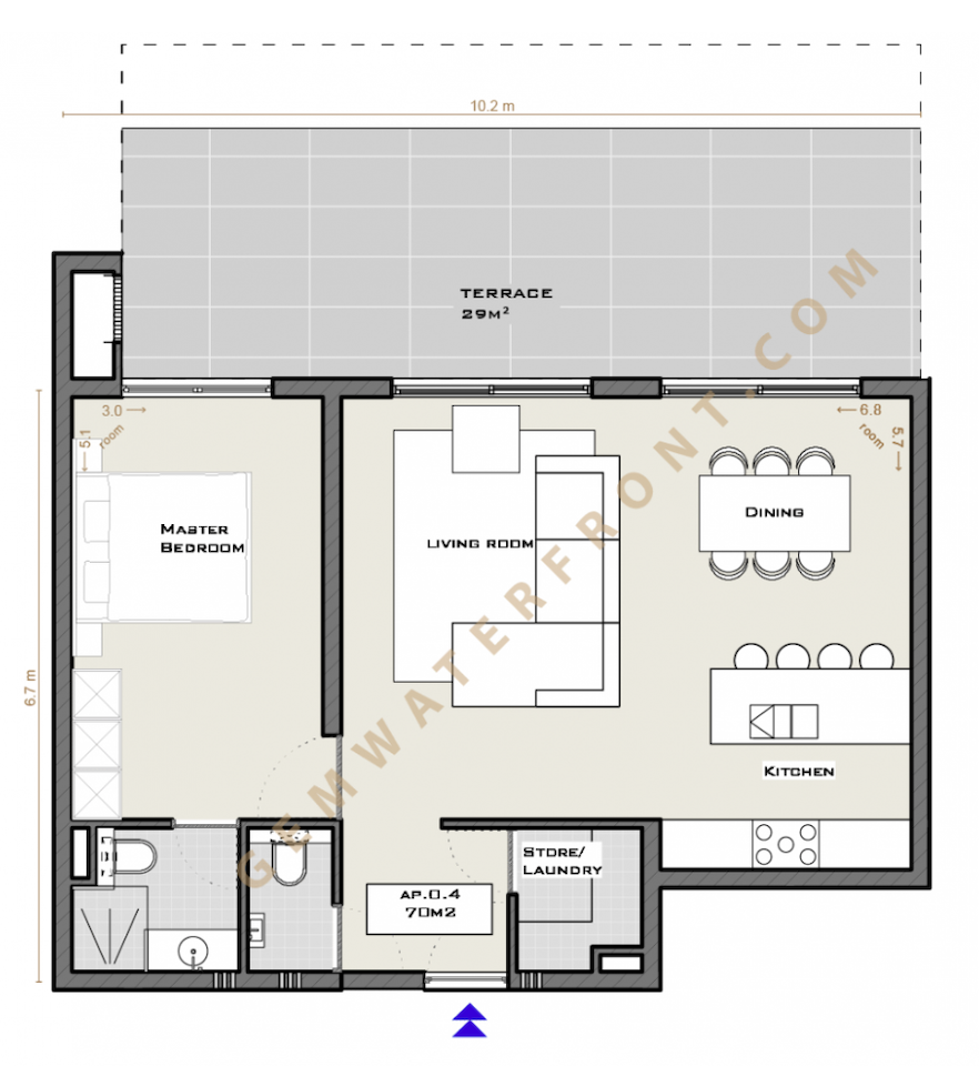 Alle strandunits binnen Orchid Estate zijn verkocht en GamRealty brengt met trots de laatste beschikbare strandunit op de markt. Gelegen op de begane grondDit appartement biedt een naadloze overgang van binnen naar buiten, met een 70 m² interieur en een ruim privébalkon van 29 m²—in totaal 99 m² modern kustcomfort.